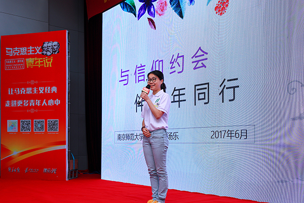 来自南师大的1位青年教师和3位青年学生分别发表了《与信仰约会,伴青年同行》、《我的马克思主义缘》、《辩证法——走进世界纵深处的利器》、《终于追上你,还好我没放弃》等4篇主题演说。现场还请到了来自南师大的4位马克思主义学者代表为演讲进行点评。演讲者们结合自身经历演绎了马克思主义的丰富魅力,饱含深情、感人肺腑。